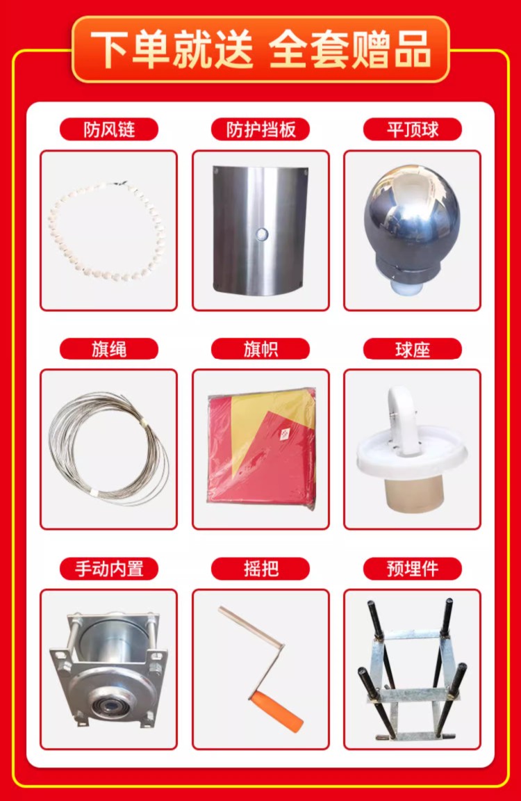 三、球头360度顺风选装计,保证旗帜迎风飘扬;